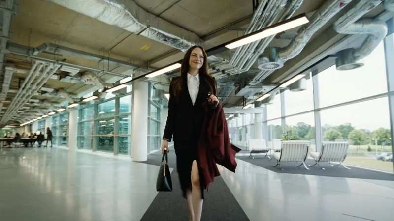 As Teddy (Jesse Plemons from Civil War, Alex Garland, 2024; Kinds of Kindness, Yorgos Lanthimos, 2024; Killers of the Flower Moon, Martin Scorsese, 2023) explains it, they live among us. While he and his autistic bother Don (Aidan Delbis) eke out their very ordinary lives with Teddy working in a warehouse for big pharma company Auxolith, the company CEO Michelle (Lanthimos regular Emma Stone) has her life on a platter: expensive home outside which she works out on the landing every morning, expensive SUV to get her to corporate HQ and back, and an army of corporate minions around her to ensure her every order is carried out. Even so, she still has difficulty speaking complicated lines for a corporate video. But that’s nothing compared to the ordeal Teddy has planned for her.