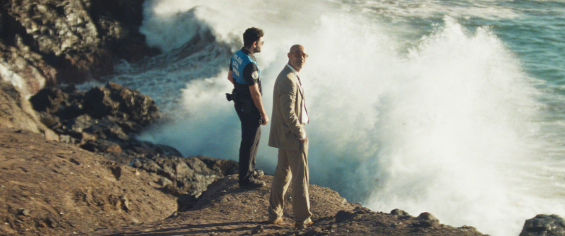 Tom (Sam Riley) wakes up in the desert and walks back to his car. He often nods off – at one point he is woken by a tap on his car window by the local police chief Jorge (Pep Ambròs) in a scene reminiscent of the one in Psycho (Alfred Hitchcock, 1960), one of the differences being that he’s a local and he and the cop not only know each other, but are friends. (Another is that in Psycho, the motorist is a woman and the cop a man, which brings a whole other dynamic into play.) Jorge fines him for a traffic violation, but apologises for the fact, and the two men’s friendship is able to accommodate that.