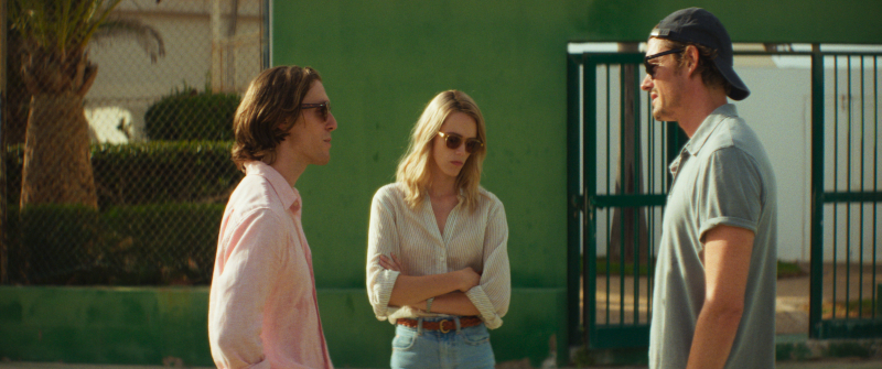 Riley is perfect as the dishevelled, non-establishment, British ex-pat whose appearance, like the aridity of the island, seems to describe his personal state. It’s a very different performance from what we’re used to seeing him do. The characters he plays (in, for instance, Widow Cliquot, Thomas Napper, 2023; Firebrand, Karim Ainouz, 2023; Control, Anton Corbijn, 2007) tend to have more of a buttoned-down quality.