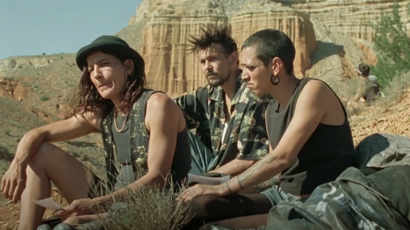 As they journey desert across country, Luis must learn to trust those he’s following. A river seemingly too deep for his comparatively small van to get through gives them the opportunity to tow him across after he initially feels they’ve abandoned him. Later, Pipa falls sick, most likely after eating the shit of one of the ravers who has taken LSD, and must be nursed to recovery.