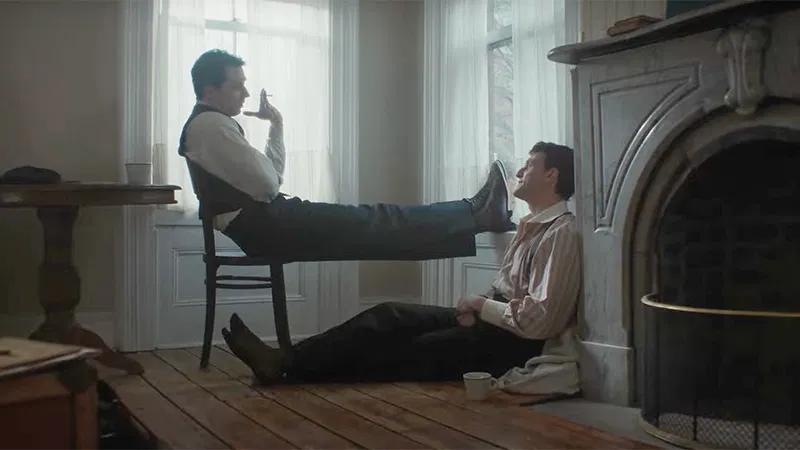 In 1917, having grown up on a farmstead in rural Kentucky and his remarkable singing voice being noticed by a local schoolteacher, Lionel Worthing (Paul Mescal from Hamnet, Chloé Zhao, 2025; Gladiator II, Ridley Scott, 2024; All of Us Strangers, Andrew Haigh, 2023) gets a student scholarship to Boston’s New England Conservatory of Music. One Saturday evening in a Boston pub with friends, he makes the acquaintance of David White (Josh O’Connor from La Chimera, Alice Rohrwacher, 2023; Mothering Sunday, Eva Husson, 2021; The Crown, TV series, 2019-20; God’s Own Country, Francis Lee, 2017) who is playing folk songs on the piano and, it turns out, is a tenured academic with an obsessive hobby: travelling around the country collecting, recording and cataloguing folk songs. David has what Lionel describes as the sound equivalent of a photographic memory: he can remember word for word and note for note, any song sung in his presence.
