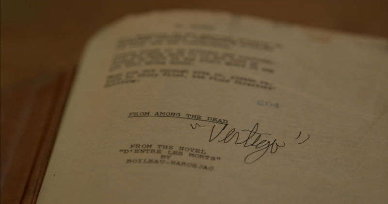 Three house fires forced her to decide what to save. Mostly it was boxes of stuff from her career, the containers in her current loft Philippe is going through; she lost a great deal of her art. One item that survived was her bound shooting script for Vertigo, originally called From Among the Dead (after the book from which it was adapted). Imperceptibly she starts talking about the character as Philippe runs the flower shop sequence. “It’s like, she’s very much Judy, but starting to feel good in her skin. Like stepping into another being, like starting to feel the fit is right.”