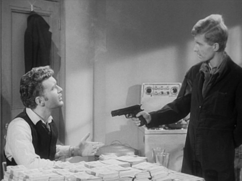 All of which gives some indication of the ingenuity with which this film is plotted: director Sewell was a Michael Powell protégé of whom the latter wrote in his autobiography that Sewell was “the most competent man I have ever known. When consulted about an estimate for anything… Vernon tears up the estimate and does the job himself… Men such as Vernon are invaluable around a film studio. They are at home in all departments….” What Sewell does here, working from a screenplay by Max Marquis (who went on to write episodes of The Avengers and Z Cars and Crossroads on TV) and Richard Harris (who went on to write episodes of The Avengers and Z Cars), is essentially simple: he gives his villains a task and then puts plausible obstacle after plausible obstacle in their way. He does this so brilliantly that audience expectations are constantly overturned, leading to a taut thriller that never misses a trick, right up till its final moments. It’s essentially a film about the perfect crime which goes badly wrong.